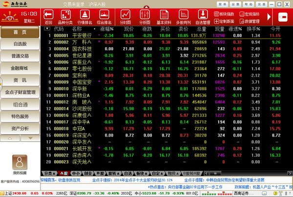 西南证券金点子财富管理终端是我公司推出的一套全新的财富管理平台。集行情、交易、资讯、服务、理财、融资融券、股票期权为一体,通过提供全方位、多功能以及个性化的服务,让客户感受到与传统网上交易系统截然不同的超值服务体验。通过咨询服务、理财服务助您财富增长。