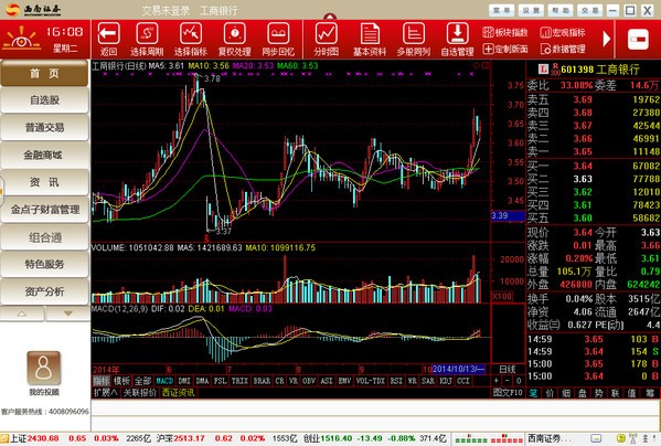 西南证券金点子财富管理终端是原西南证券新干线的升级版,是证券公司为广大投资者提供的,目前市场上最主流的通达信版行情交易软件。客户可将此软件下载安装,运行时只需点击桌面或程序组的快捷方式,即可察看行情,分析走势,登录个人账户即可进行证券买卖。欢迎开户、下载使用。