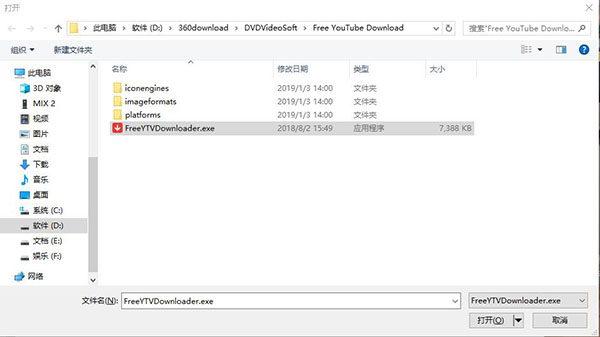 3、选择“FreeYTVDownloader.exe”文件,点击打开。