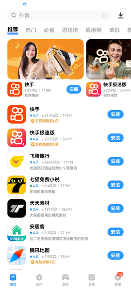 推荐、应用、游戏、排行多种方式寻找你最喜欢的app