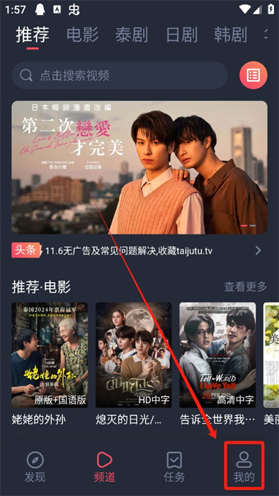 1、这款软件想要开通会员其实不用花钱,也可以花钱,有两个方式,看用户如何选择,在软件的界面中点击【我的】;