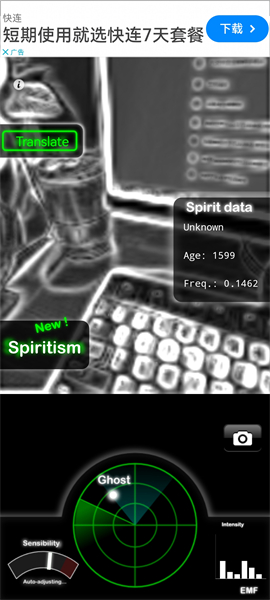 幽灵探测器正版是一款非常有趣的鬼魂探测软件,但是这是开玩笑说,其实就是一款基于增强现实打造的扫描软件,会把手机扫描到的所有物体全部转化为能量的样式,不同的物品有不同的能量,就像是热量显示一样,把人有能量的部位显示出来,具有娱乐的性质。