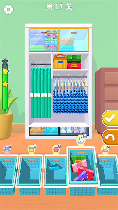 2、海量不同难度的关卡,游戏内置了大量的收纳关卡,考验玩家的整理收纳能力,对强迫症玩家非常友好;