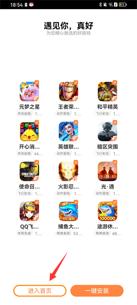 1、首先在本站下载安装好软件后,点击软件,就能看见软件有推荐的很多不同类型的游戏,大家可以根据自己的兴趣自行下载,随后点击进入首页;