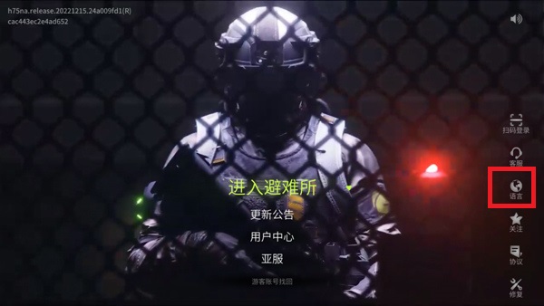1、首先需要下载安装游戏,安装完成之后需要打开游戏,在游戏中点击右边的【语言】按钮,切换语言;