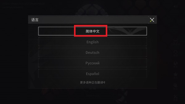 2、在这里直接选择【简体中文】就可以轻松的切换游戏界面为中文的样式;