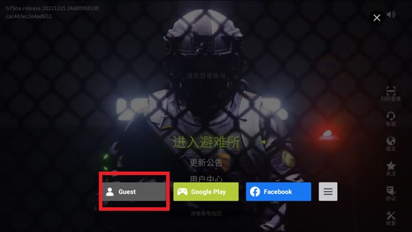 3、如果没有谷歌或者是其他的账号,可以选择【Guest】游客登录,不用账号登录游戏;