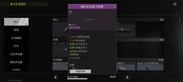 在对局中,不论是从击败的对手身上还是在地图中都能找到很多配件。很多小伙伴对地图不熟悉也不是问题,可以在记录档案-枪械档案-配件界面点击地图攻略,就能够查找这个配件在地图上如何获得了。