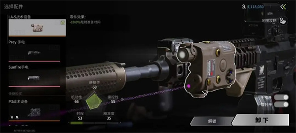 主要是手电和镭射,属性主要是跑动开枪速度和子弹精度。但手电实战作用不大反而会暴露自己位置,几乎用不到。如果枪的战术设备有镭射的话可以考虑加一个,对于步枪而言镭射能大大提升腰射准度。