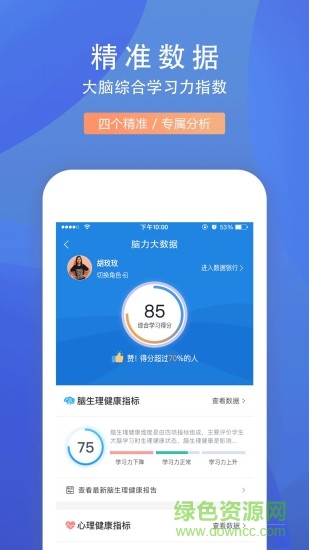 脑力人工智能app是面向中小学生推出的脑力测试与教育软件。提供了专业精准的脑力报告分析以及大脑综合指数统计功能。帮助学生们找到正确的脑力提升方法,真正专注于大脑开发教育!赶快来绿色资源网下载体验吧。