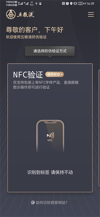 “五粮液防伪”是一款基于近场通信(NFC)技术的多功能智能手机防伪应用,为广大五粮液消费者提供了快捷、准确、可靠的防伪查询手段,是消费者查验高档五粮液产品的首选应用。目前只有支持NFC功能的智能手机才能使用全新一代NFC防伪查询功能。