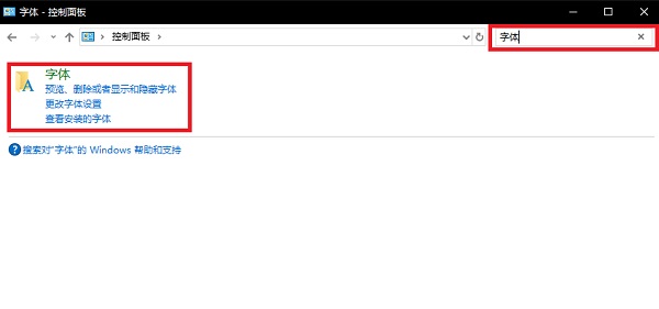 1.进入控制面板,在搜索栏搜索字体,点击进入。
