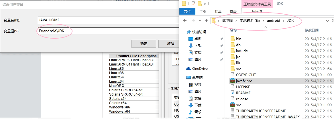 在用户环境变量中新建变量JAVA_HOME,设置变量值E:\android\JDK,也就是JDK安装的绝对路径