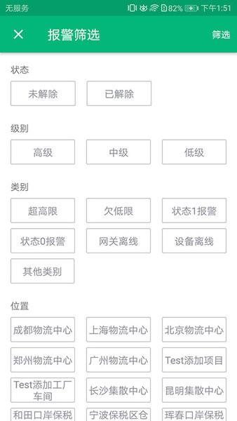 1、可以自行筛选报警类别,以便能更高效的查看和了解;