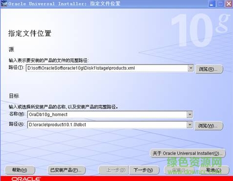 2、点击“下一步”进入“Oracle Universal Installer:指定文件位置”