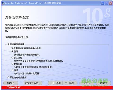 5、进入“Oracle Universal Installer:选择数据库配置”