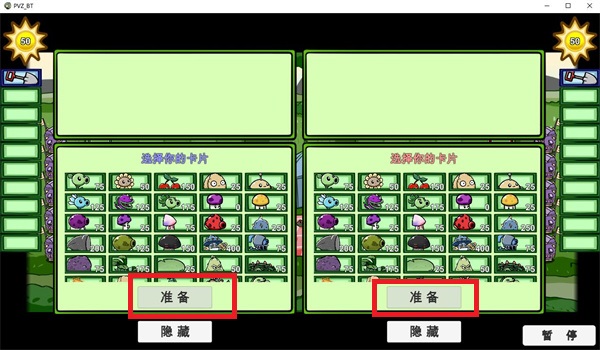 5、需要选择双方的植物和僵尸阵容,双方都可以选择植物还有僵尸,植物可以防御,僵尸可以进攻,选择好阵容之后就可以点击【准备】;