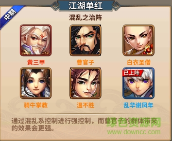 该阵容通过黄三甲和曹官子的强力控制,能对敌方造成强有力的打击。同时曹官子的群体buff效果也能小幅度提升团队的持续作战能力,是pk较强的阵容。