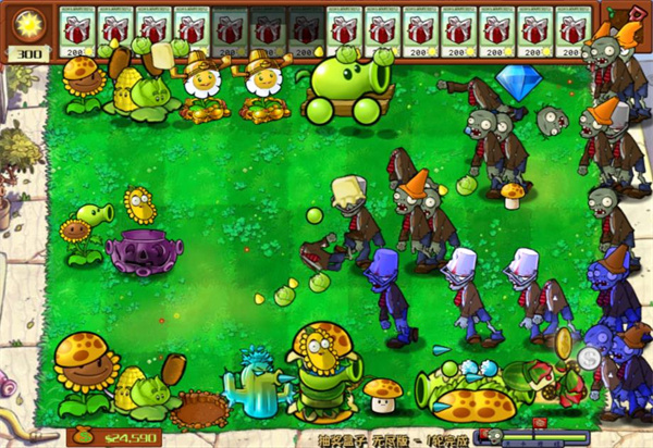 3、让你和僵尸之间去进行对决,随机的植物不靠谱的出现,你需要及时的应对局面的危机。