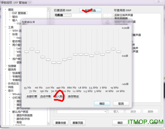 〓4.DSP管理的设置,dsp是数字信号的处理,我们可以理解为音效处理。新手建议使用均衡器就可以了,对于其他音效插件(dfx,BBE,重低音,杜比环绕以及各类音效)的使用,以后会在那些音效插件里讲到。