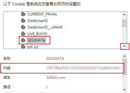 选中SESSDATA后,点击一下下方内容后面的文本,使用Ctrl+A全选,使用Ctrl+C复制。
