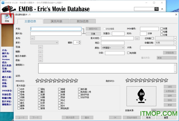双击“EMDB.exe”打开程序,点击“添加”==填写需要添加的新的影片的资料,点击Ok,既可以添加成功