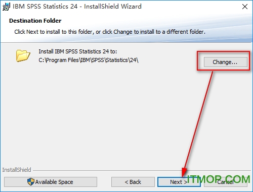 3、选择安装目录,默认安装位置是C:\Program Files\IBM\SPSS\Statistics\24\,小编这里选择d盘