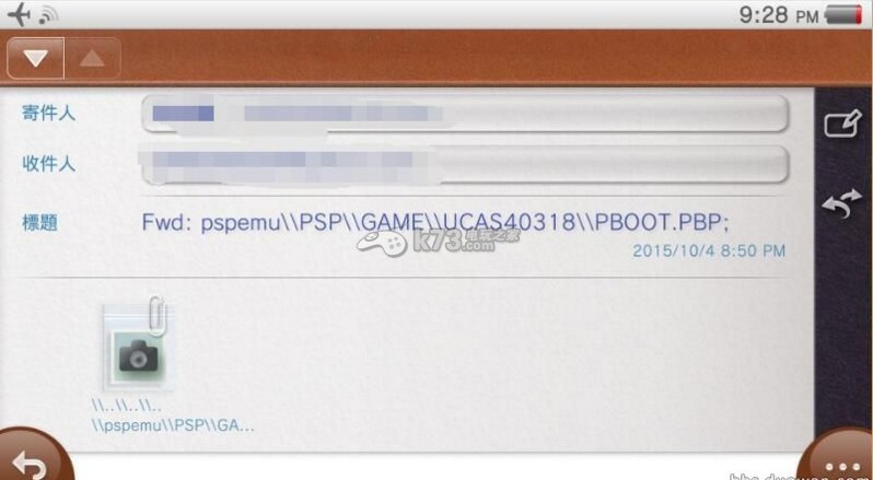 6.用PSV的邮件app登陆邮箱A,接收此邮件(建议用yahoo,注意用imap模式,以防出现其他情况)。点击附件,出现提示,直接撕掉,不要点确定
