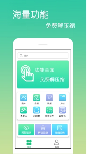 4、 提供免费的解压缩服务,文件格式可以快速的进行来回转换,达到你喜欢的模式。