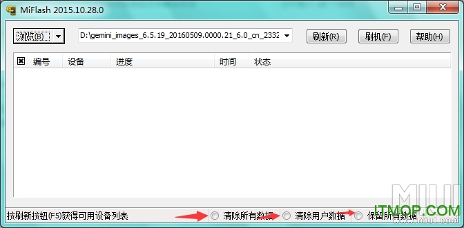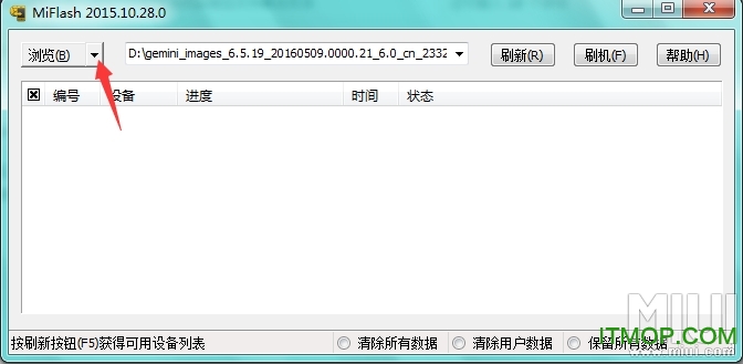 2.打开刷机工具后,点刷新,点刷机后等待进度条走完;