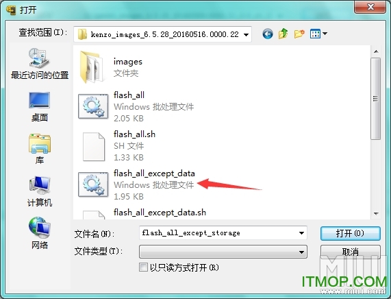 三、从这里找到你下载好,解压完毕的刷机包,选择flash_all_except_data文件