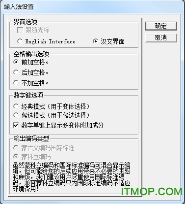 将输入法分为蒙科立编码版(放入CH语言栏中)和标准编码版(xp中放入CH语言栏中,vista及以上版本中放入MN语言栏中)。
