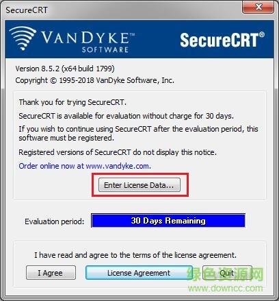 5.然后运行SecureCRT,会提示要注册,点“ok”,接着选“Enter license Data”