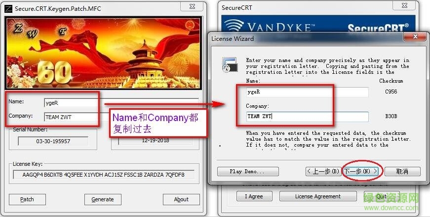 8.然后将注册机中的Name和Company信息都复制到软件框中(如图),再点“下一步”