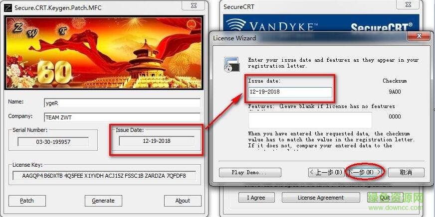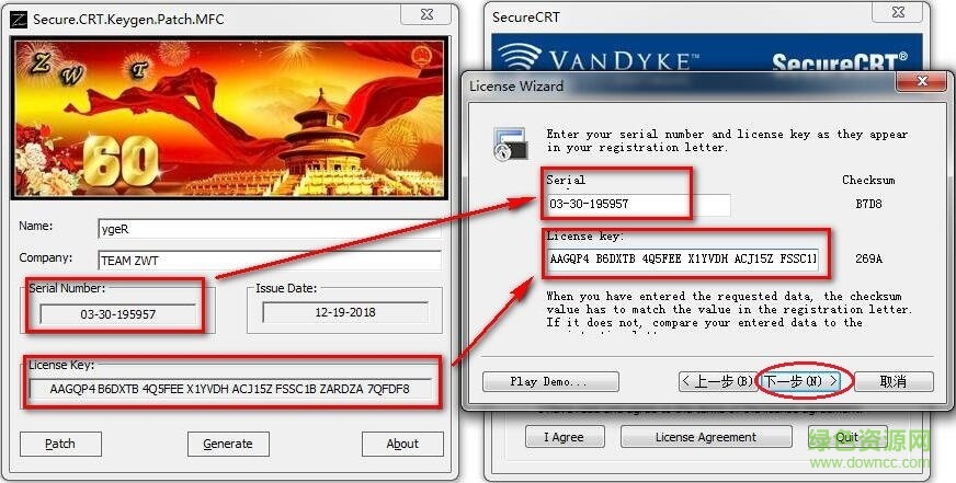 9.再将注册机中的Serialmumber和License key复制到软件对应框中去,继续“下一步”