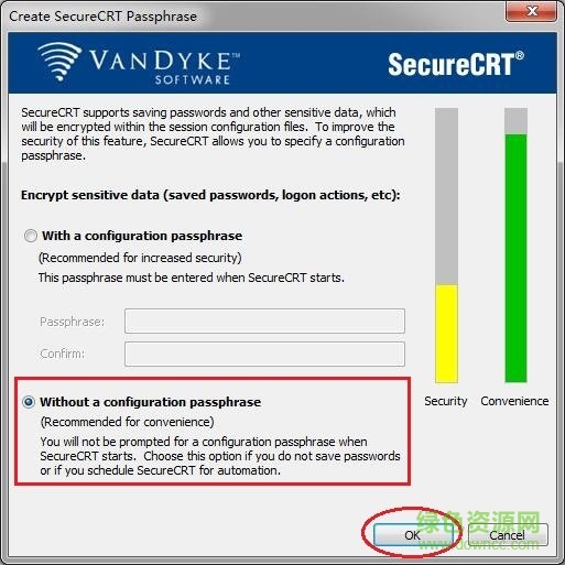11.勾选“without a configuration passphrase”,点击“ok”就可以了
