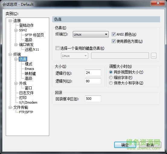 终端选择“Linux”, 勾选“ANSI颜色” 和 “使用颜色方案”,终端颜色配置请见下面后续...