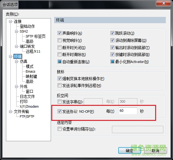 SecureCRT连接后如果稍长时间不用就会掉线,往往会造成工作状态的丢失。如下设置可以始终保持SecureCRT的连接: