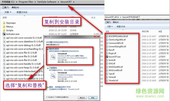 1.将“SecureCRT8.0汉化补丁”里面的所有文件复制到SecureCRT安装目录,会提示覆盖,全部选择“是”