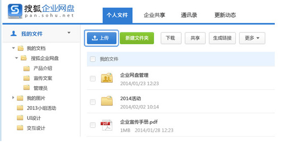 (2)搜狐企业网盘从功能上方便企业管理数据,搜狐企业网盘支持文件夹分权限共享、详细日志查询、回收站误恢复回等功能,从管理上保证数据安全。