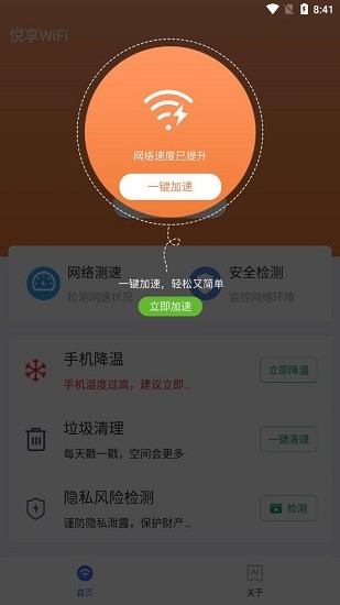 悦享WiFi,好用的wifi连接软件,可自动搜索附近可用的wifi智能连接,多种上网管理小工具可以使用,支持wifi信号增强,联网更加顺畅,支持内存优化与清理功能,让你的手机从此告别卡慢,有需要的用户可以下载使用!
