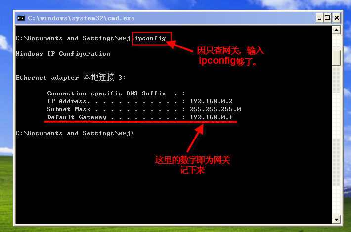 2、查询网关地址,开始菜单——运行,在运行中输入cmd,点确定
