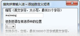 从属性——高级——自定义短语——添加新定义,进行设置,“maimeng=o 'w' o”,即可