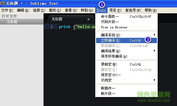 4.点击sublime text菜单栏的【Tool】选项,在弹出的饿选项中点击【立即编译】就可以了。