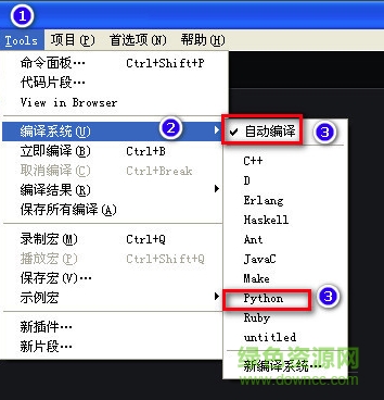 3.然后点击sublime text菜单栏的【Tool】选项,在弹出的选项中点击【编译系统】,在二级菜单中选择【Python】编译语言就可以了。如果您要运行其他的语言,您可以自行修改。