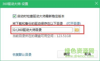 3. 如果重装作业系统后需执行还原驱动,应提前完整保存复制整个驱动备份文件夹到其他盘中。驱动备份文件夹可在360驱动大师操作页面右上角点选设置,并可自行指定设置下载和备份的驱动保存目录位置(亦可点选恢复默认目录)。