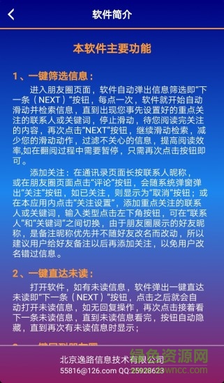 2.筛选朋友圈信息功能:你将不会再因为朋友圈信息多,没时间刷完,而错过亲朋好友客户的朋友圈信息,错过互动机会,只需您预先设置重点关注的昵称和关键字,即可点击“NEXT VIPMSG”按钮,由本软件代您翻阅检索,遇到您关注的联系人或关键字,自动停止翻阅并作出提示,节省时间;