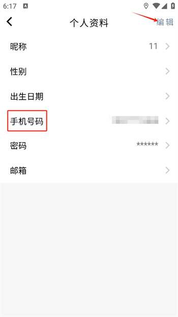 3、这里右上角就有一个【编辑】按键,一定要先点击这个按键才可以对自己资料进行修改的操作;
