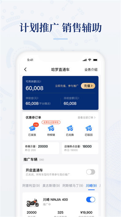 哈罗摩托商家版旨在更好的为摩托车经销商提供完备且轻量化的销售辅助工具。依托哈罗摩托庞大的用户群体为商家做线上线下引流。