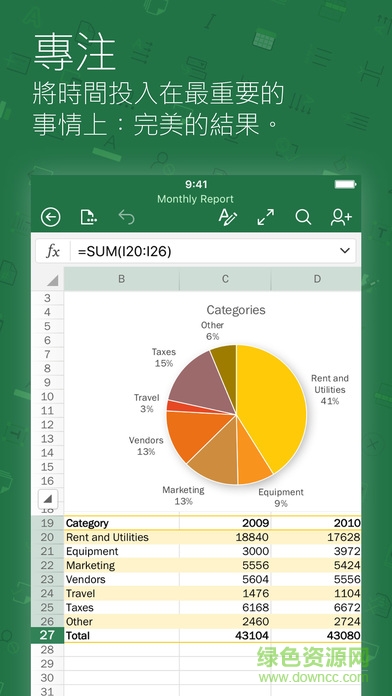 excel苹果手机版是由微软官方专门为iPhone手机用户打造的一款手机办公软件,这款软件主要用于电子表格查看和编辑,使用方便快捷,功能强大,喜欢的朋友欢迎来绿色资源网下载体验!